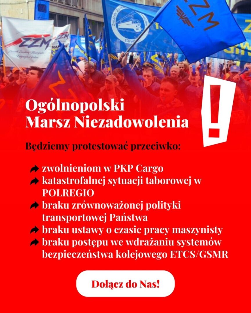 Problemy, z którymi borykają się maszyniści są dla nas jasne. Teraz zyskujemy możliwość wpisania ich w szeroki kontekst ogólnospołecznego gniewu, który dotyczy wszystkich branż i regionów. Dlatego 27 września spotykamy się w Warszawie na Marszu Niezadowolenia organizowanym przez OPZZ.